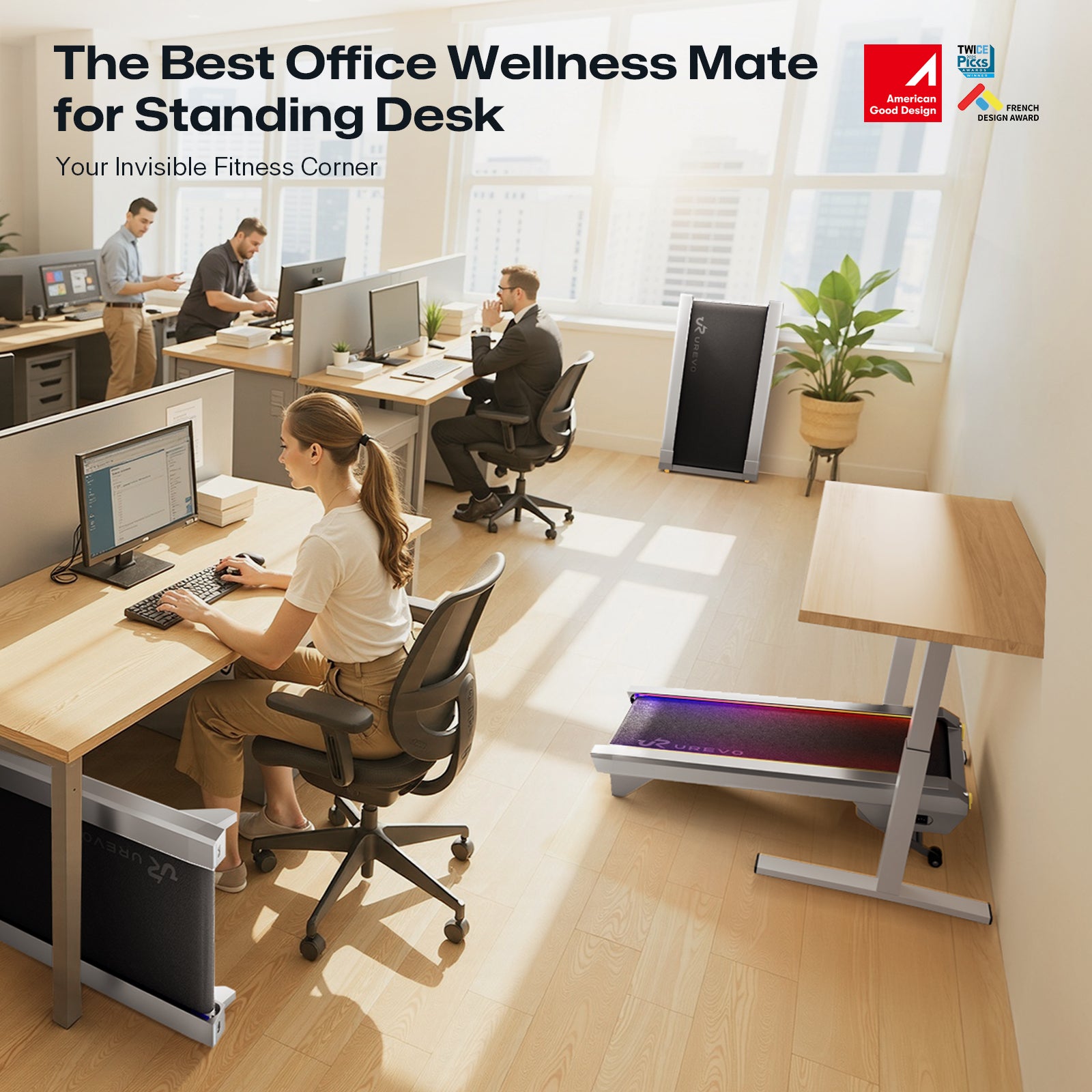 Open-Front Design for Working Spaces: Walk during calls, stretch between emails—all on your 6.4-inch ultra-slim treadmill that vanishes under any desk. The industry's lowest profile with 39.4-inch of safe walking space, letting you move naturally without leaving your workspace.