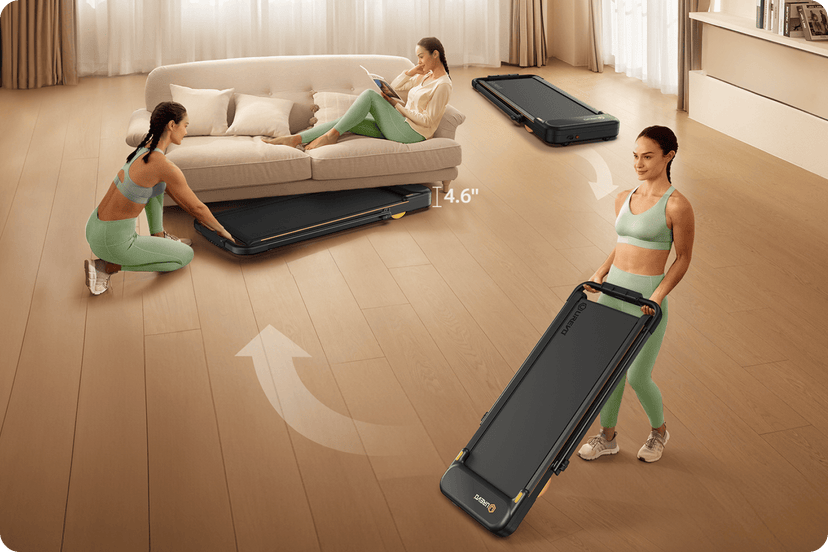 - 2-in-1 Under Desk Treadmill: Open running mode 0.6-6.2mph, folding walking mode 0.6-4mph., can be adjusted according to your needs. Not only for running, but also for use under your desk. And equipped with a remote control with a one-key to eliminate the prompt sound function for easy adjustment, and the back of the remote control is equipped with magnets, which can be attached to the treadmill to prevent loss when not in use.