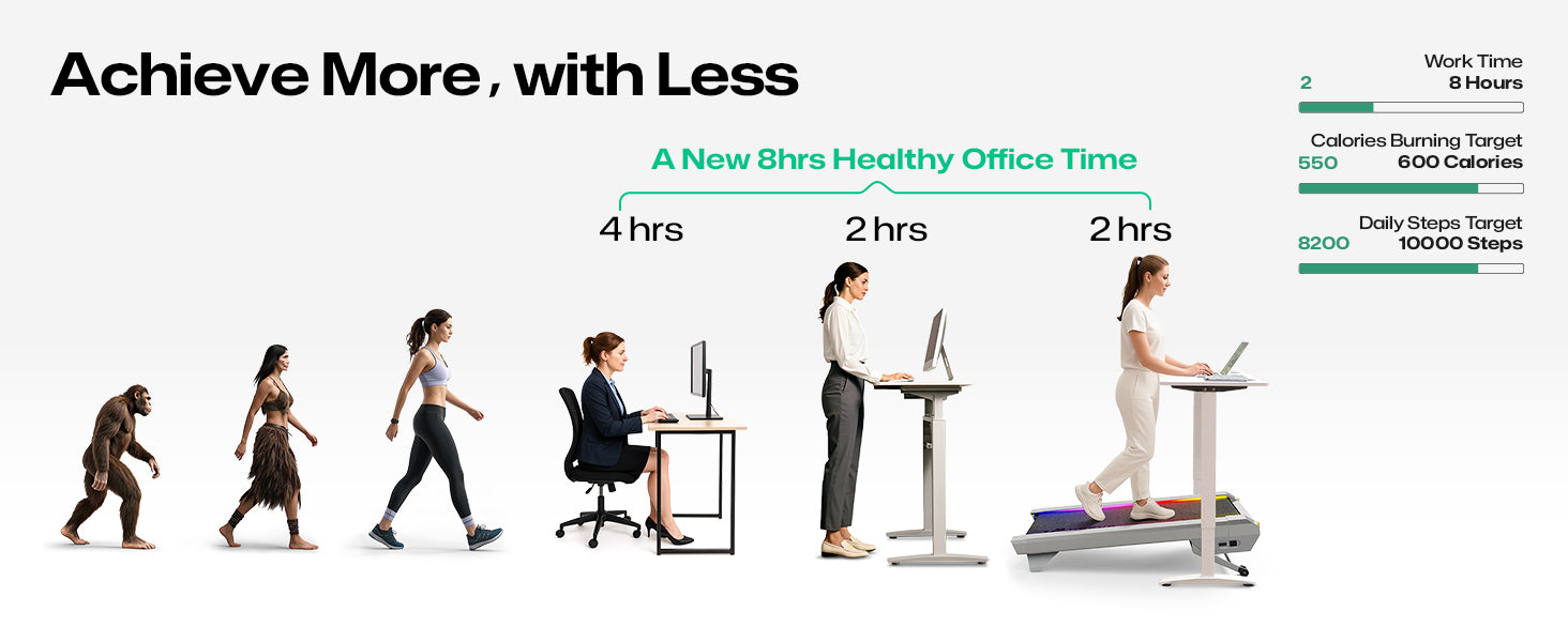 Open-Front Design for Working Spaces: Walk during calls, stretch between emails—all on your 6.4-inch ultra-slim treadmill that vanishes under any desk. The industry's lowest profile with 39.4-inch of safe walking space, letting you move naturally without leaving your workspace.