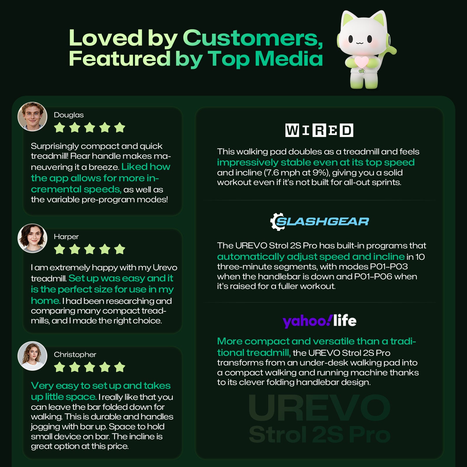 - Smart Connectivity: Connect with the UREVO App to enjoy a virtual city experience and the thrilling challenge mode. Also, you can track your workout details and elevate your exercise experience with this smart treadmill.