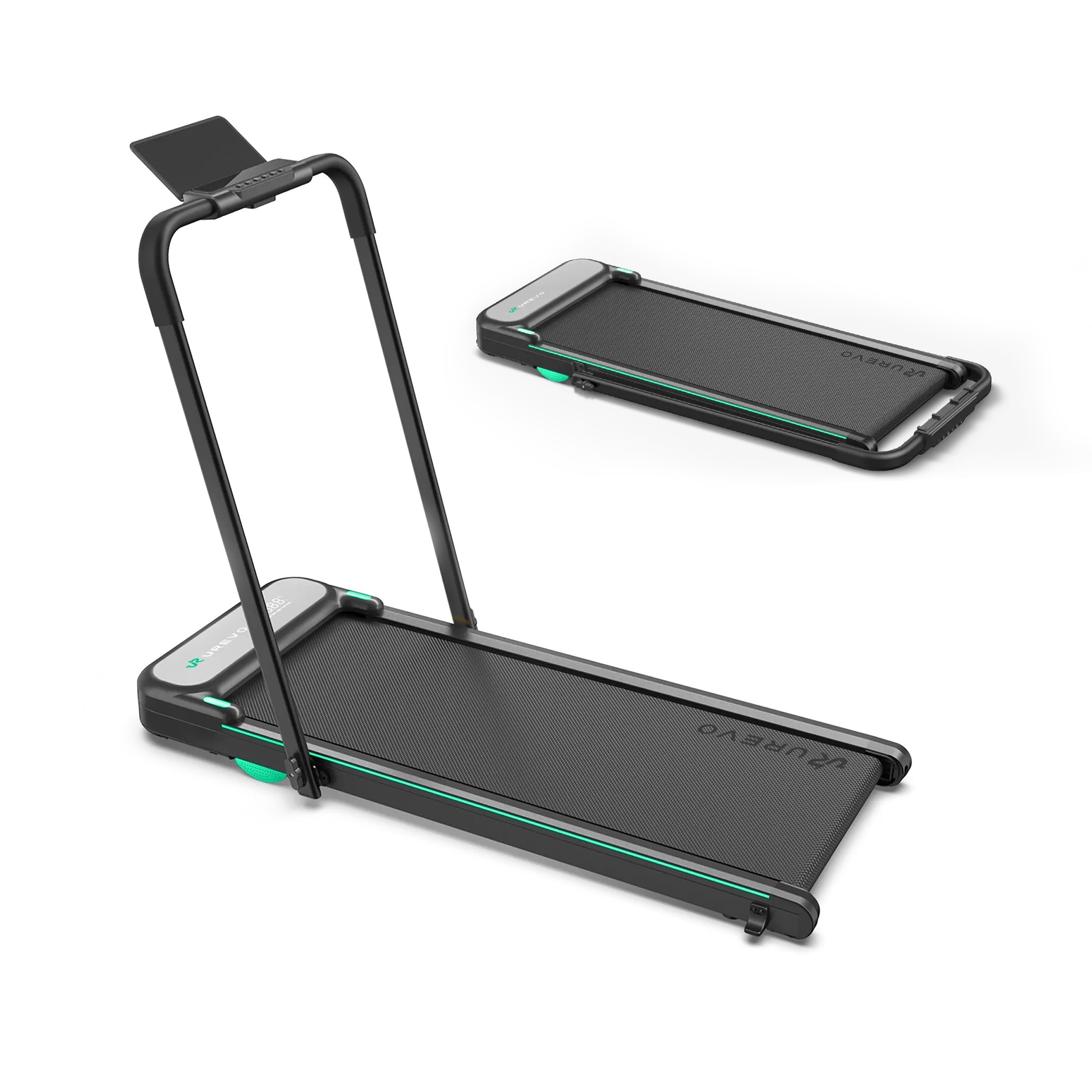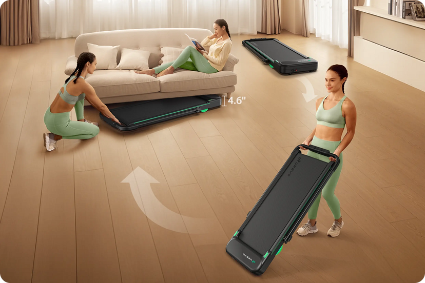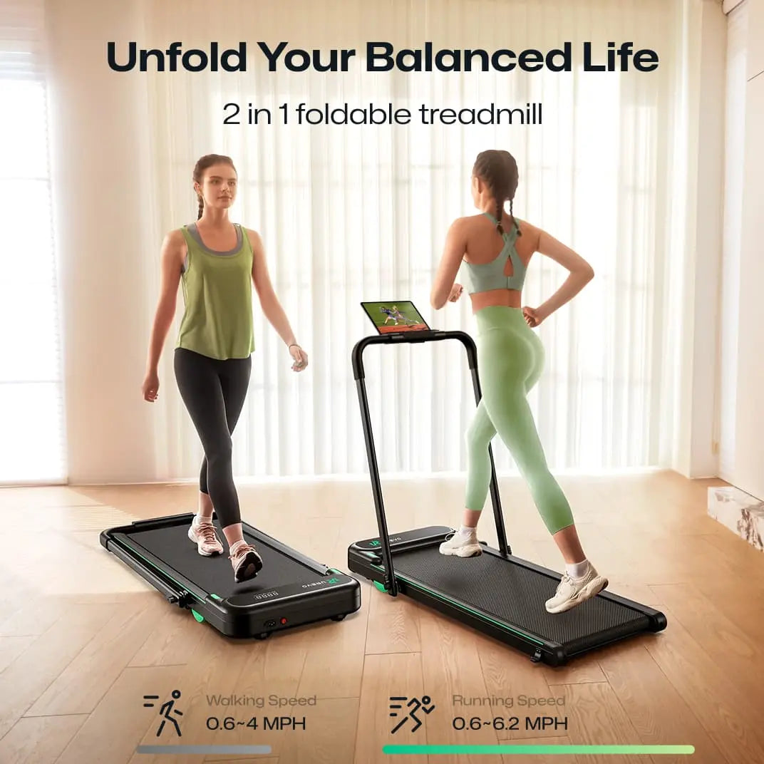 - 2-in-1 Under Desk Treadmill: Open running mode 0.6-6.2mph, folding walking mode 0.6-4mph, can be adjusted according to your needs. Not only for running, but also for use under your desk. And equipped with a remote control with one-click mute function for easy adjustment.