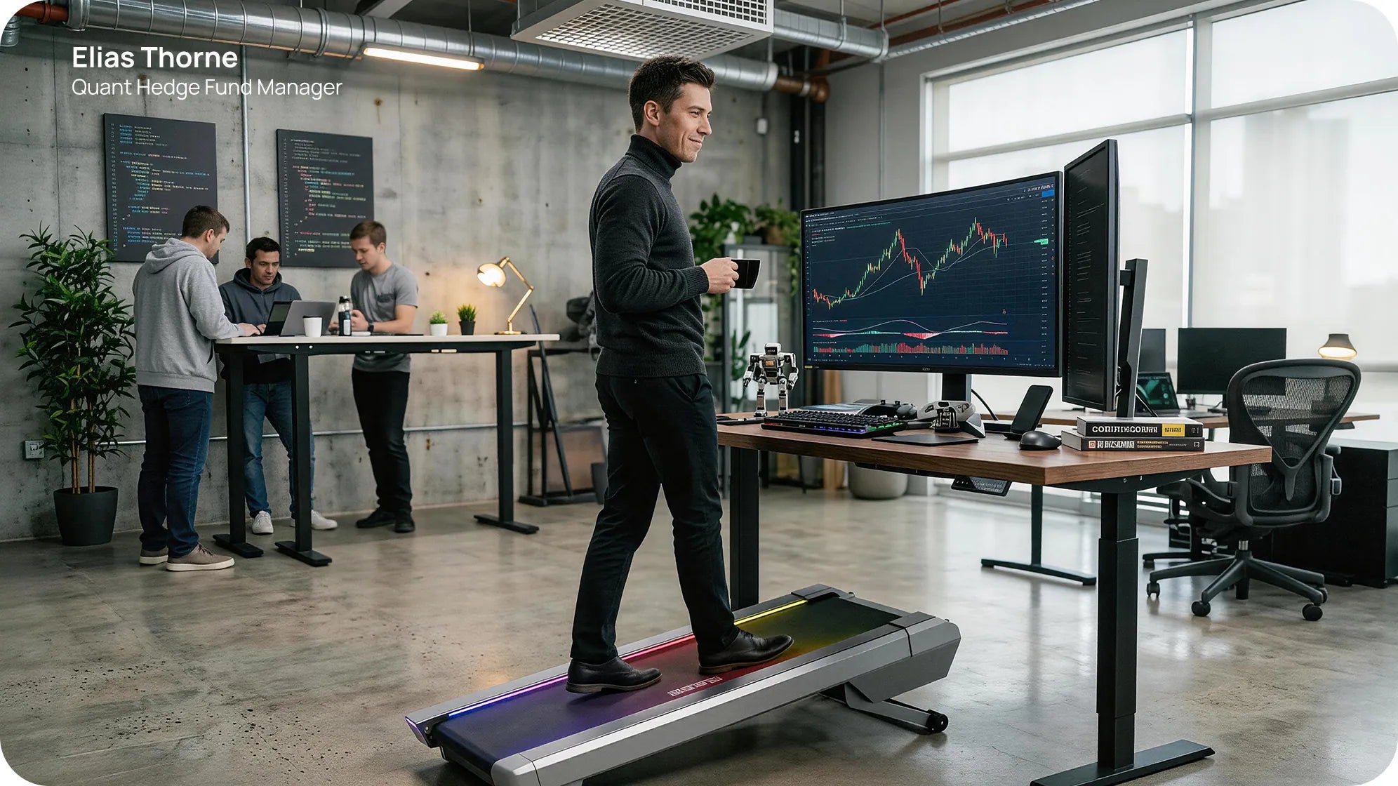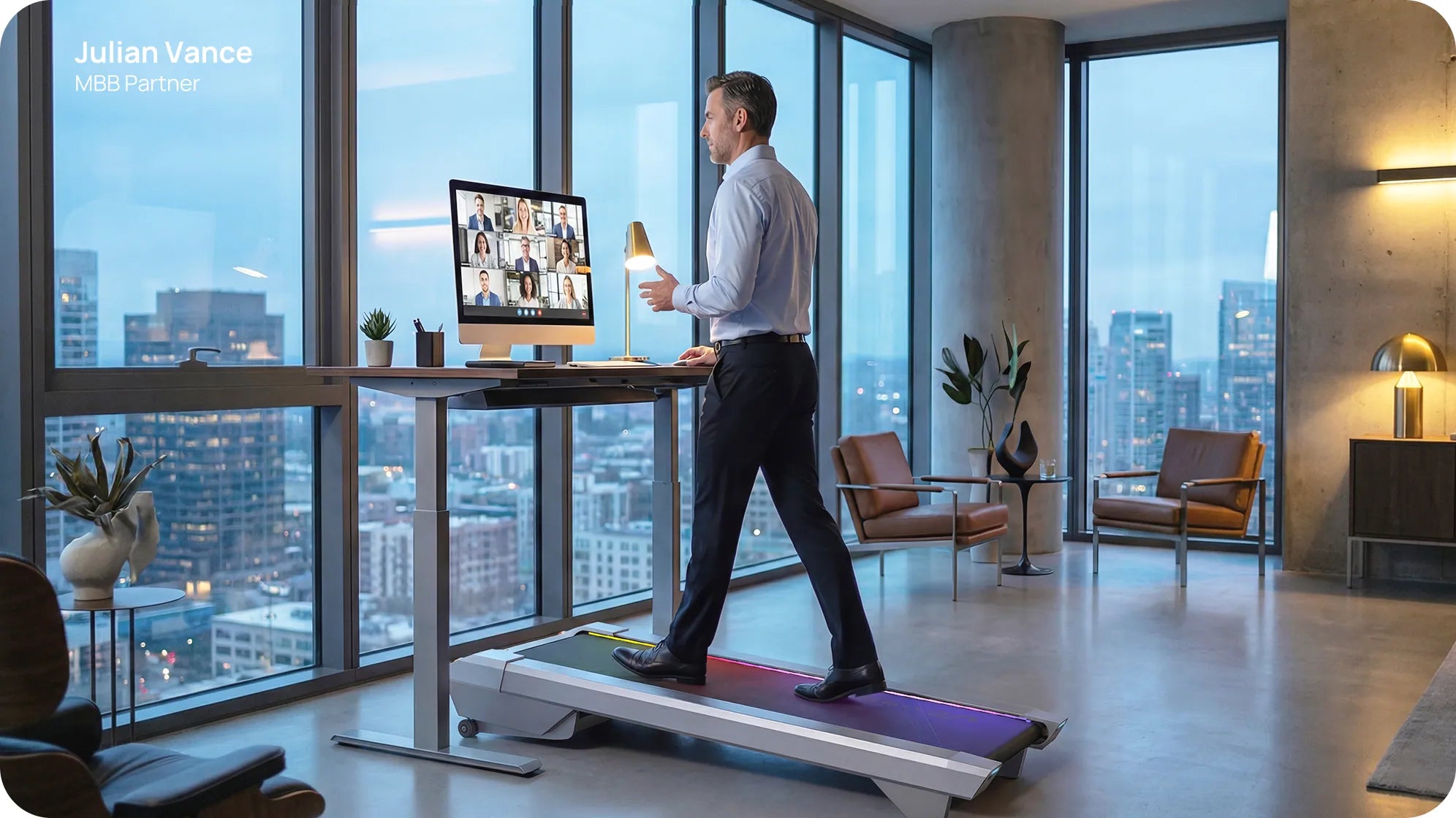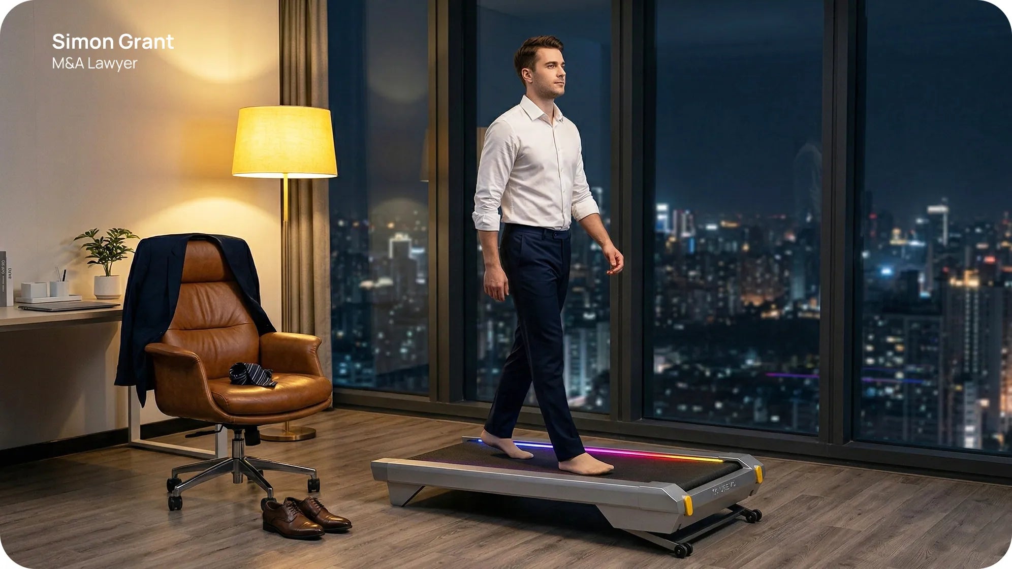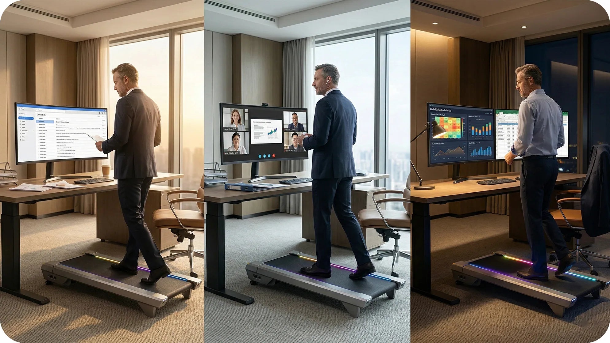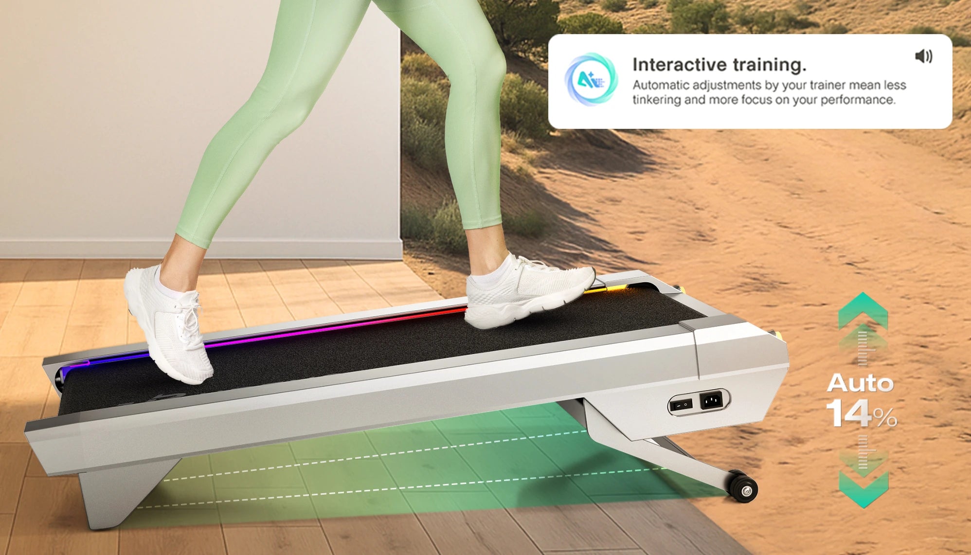 AI-powered automatic speed and incline adjustment keeps your pace aligned with your activity level. No constant manual controls, no interruptions. The treadmill adapts quietly in the background, helping walking fit naturally into your work routine.