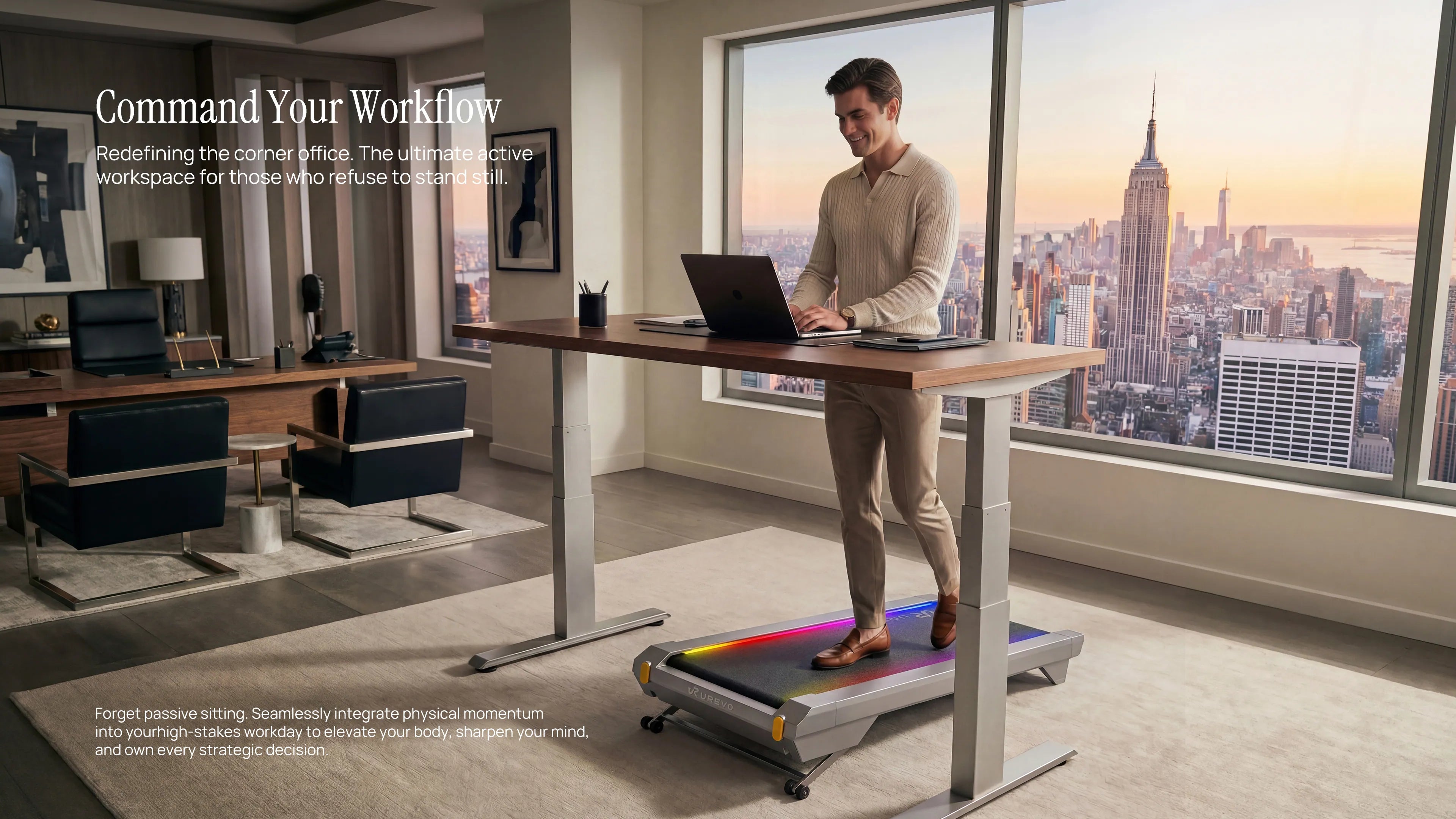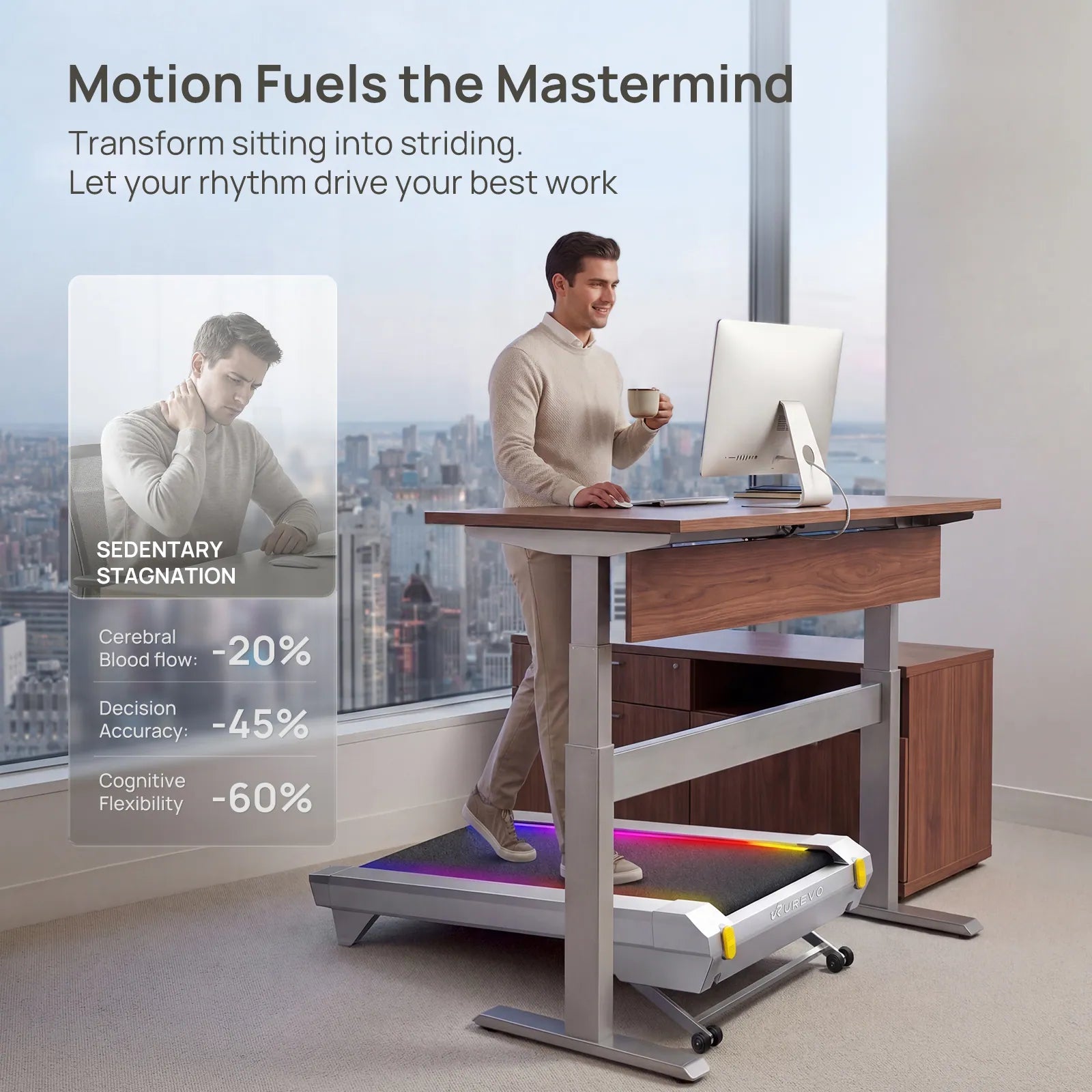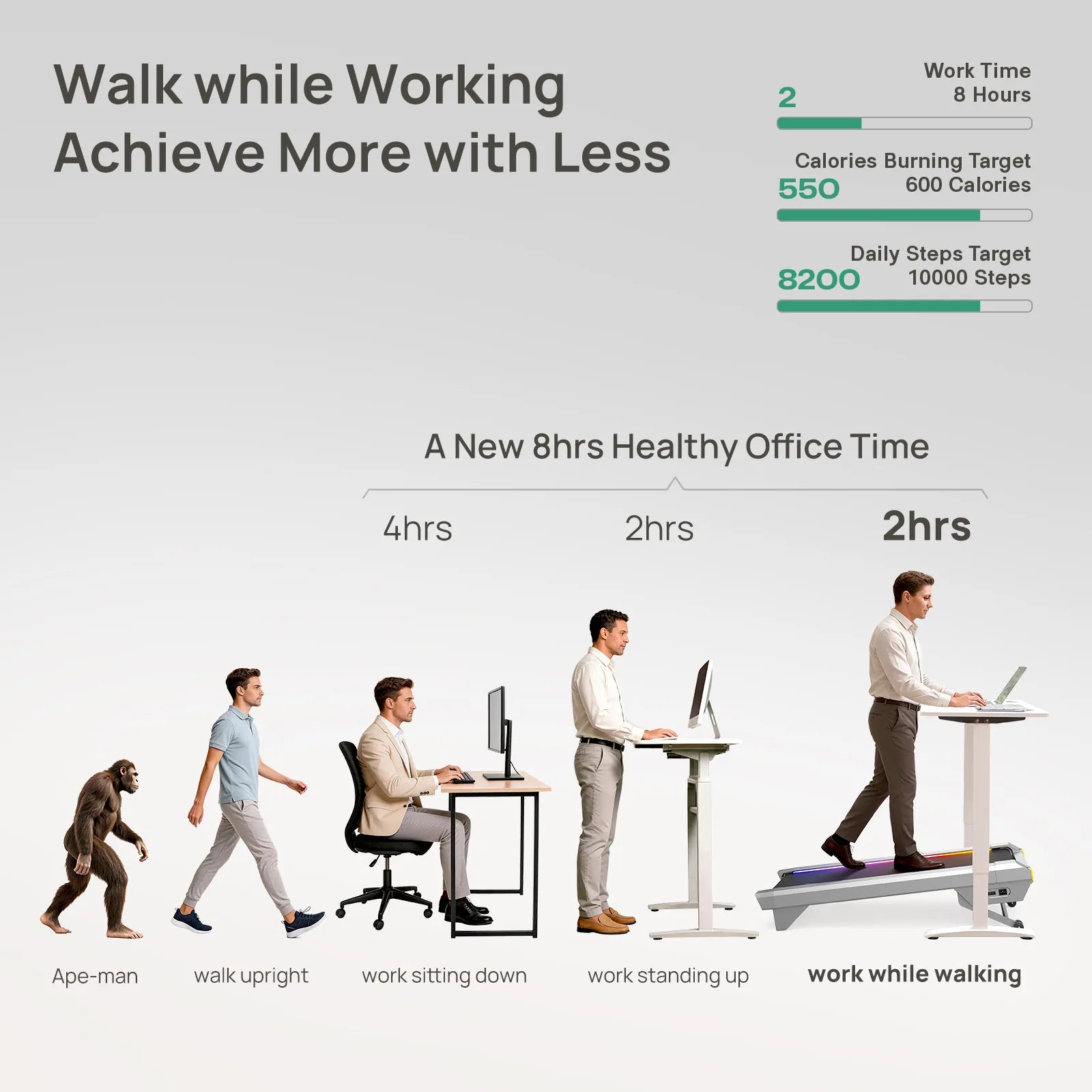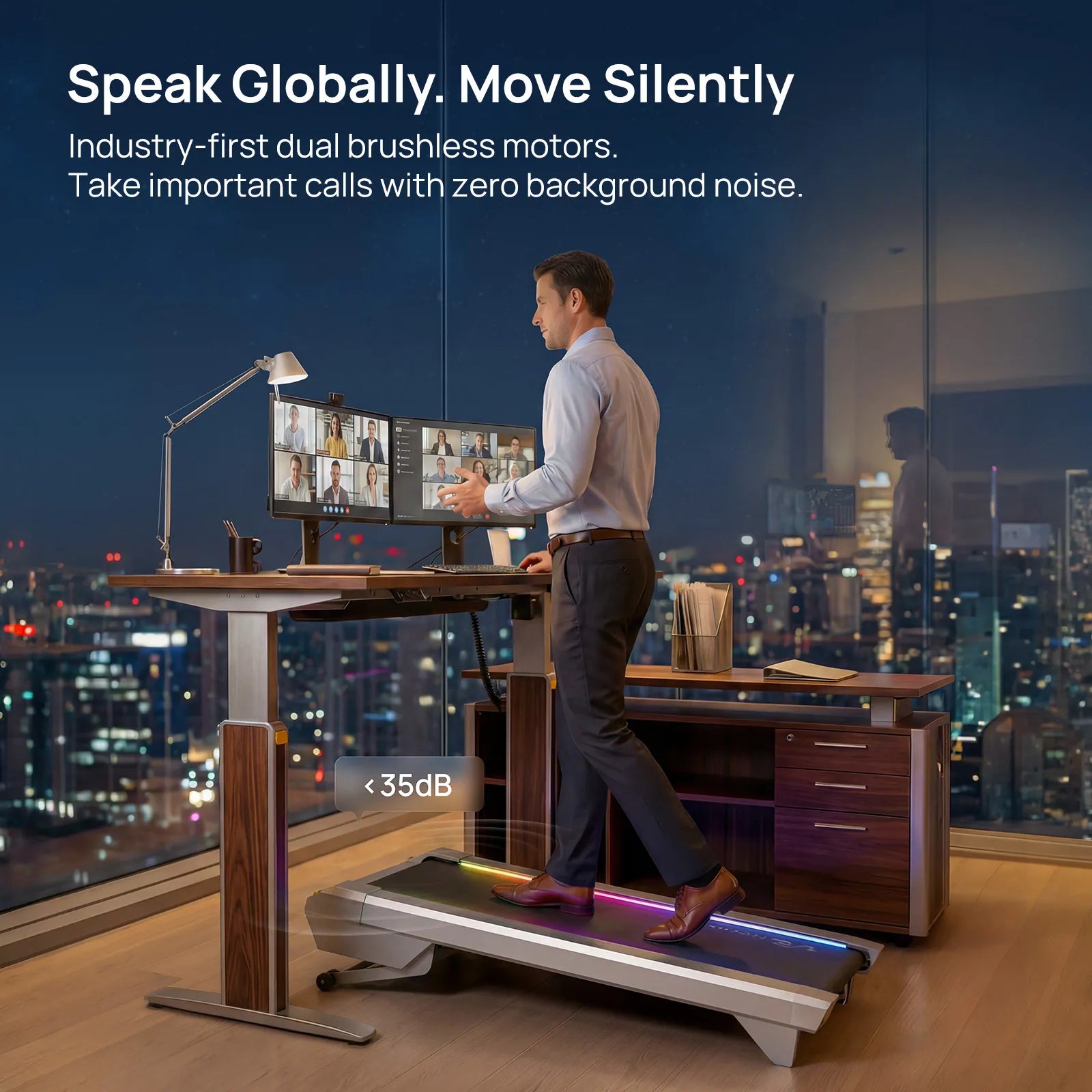 Open-Front Design for Working Spaces: Walk during calls, stretch between emails—all on your 6.4-inch ultra-slim treadmill that vanishes under any desk. The industry's lowest profile with 39.4-inch of safe walking space, letting you move naturally without leaving your workspace.