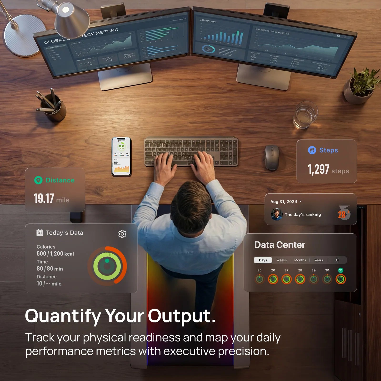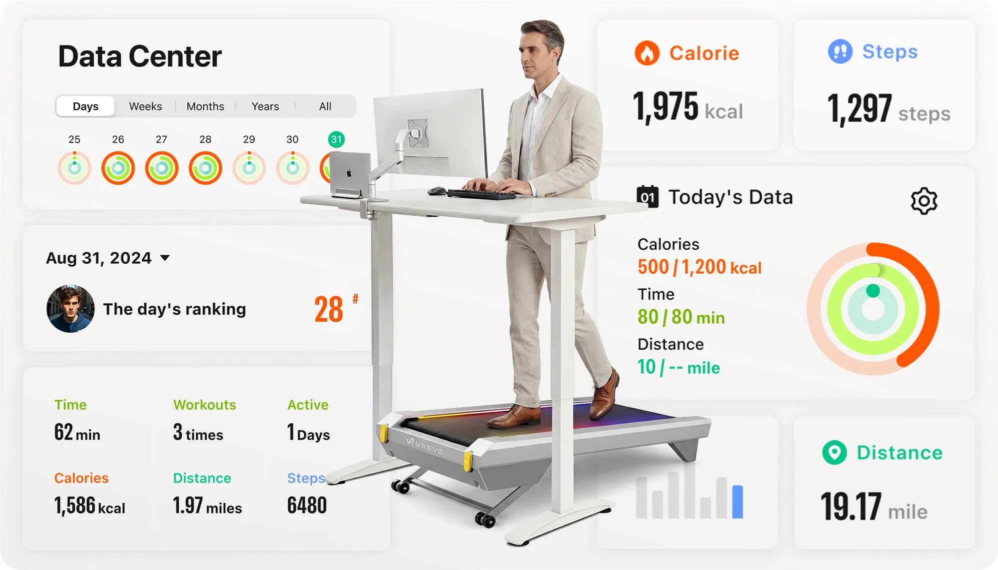 Connect to the UREVO Wellness Hub to track steps, activity, and calories with daily, weekly, and long-term reports. Real-time syncing with Apple Health and Google Fit helps turn every workday into visible, accumulative results.