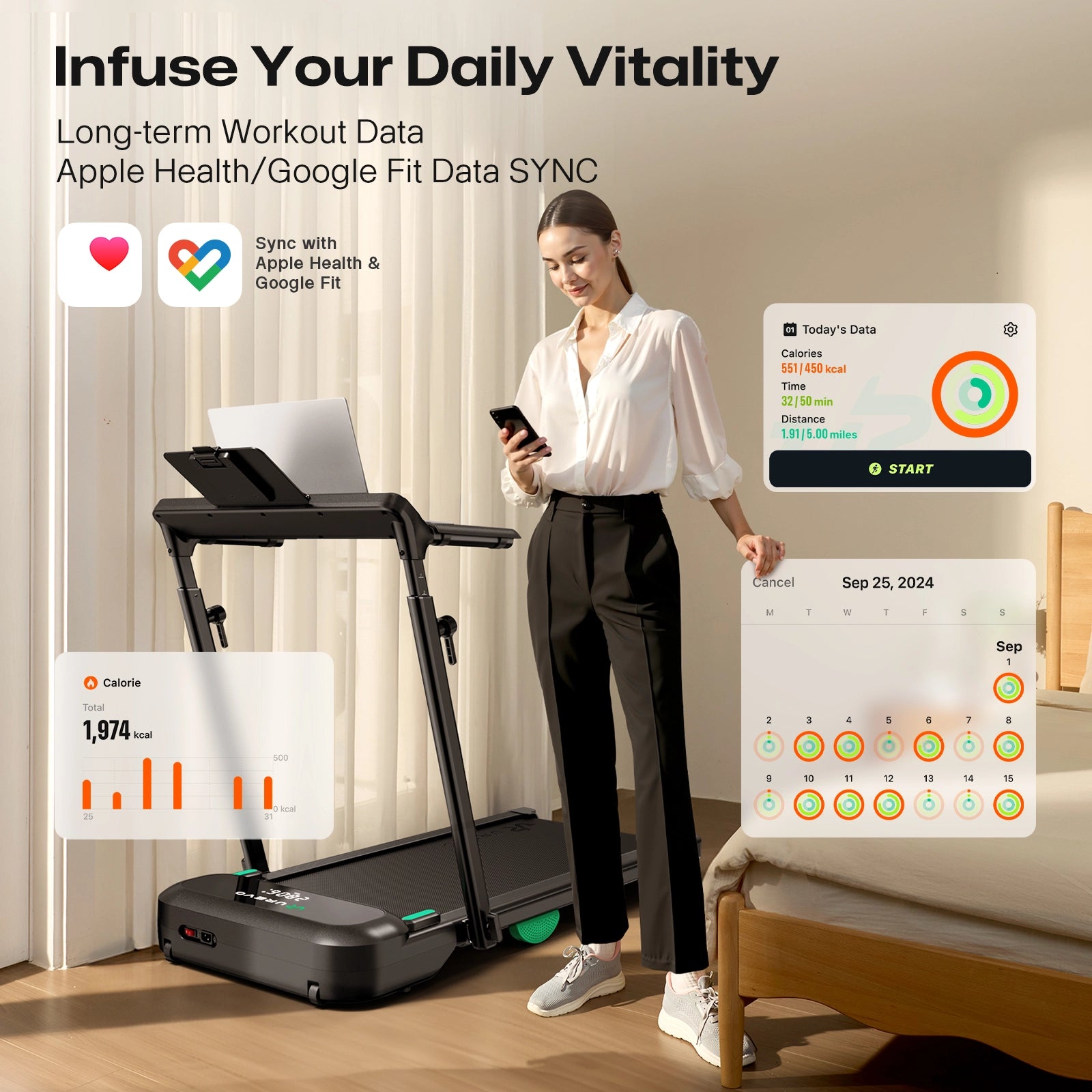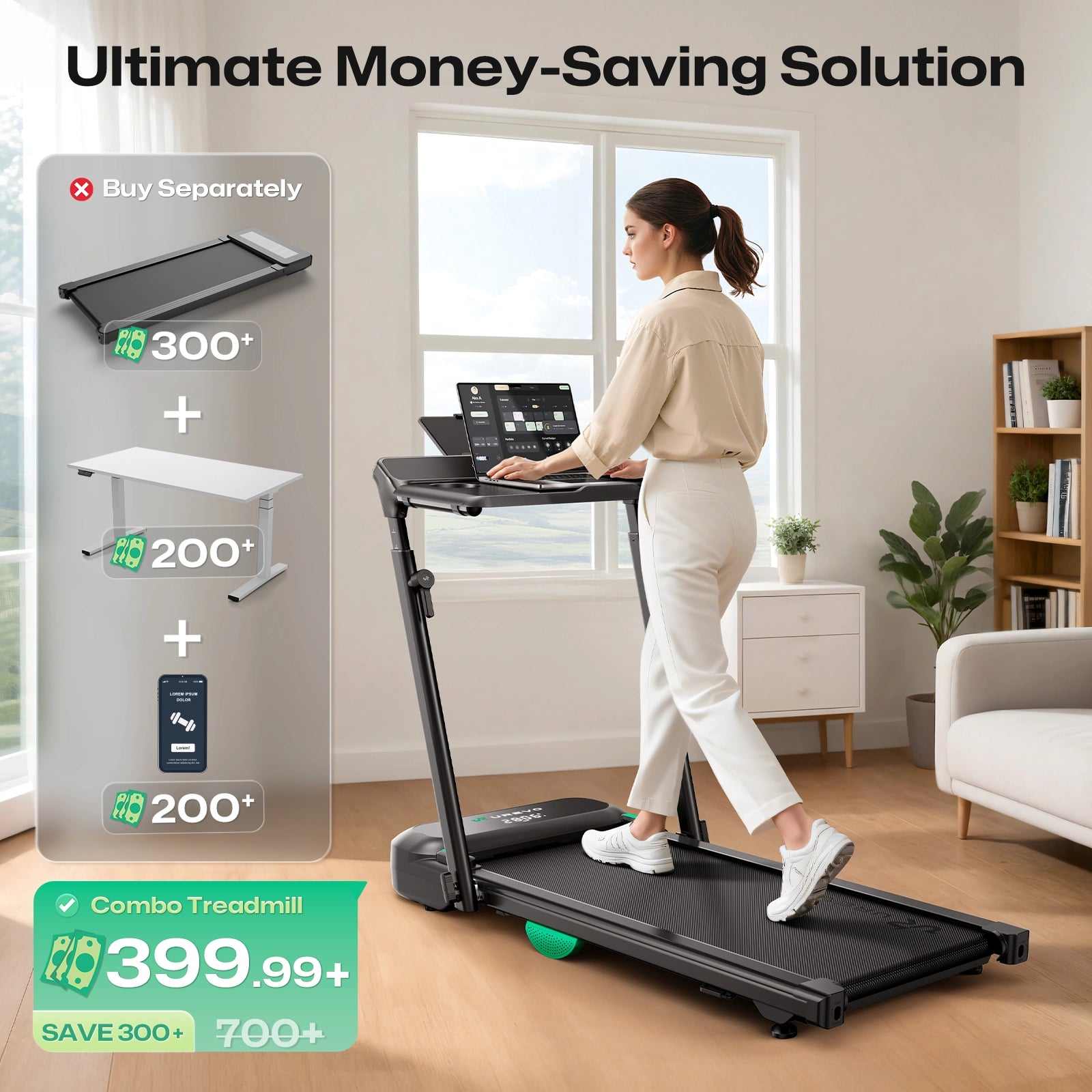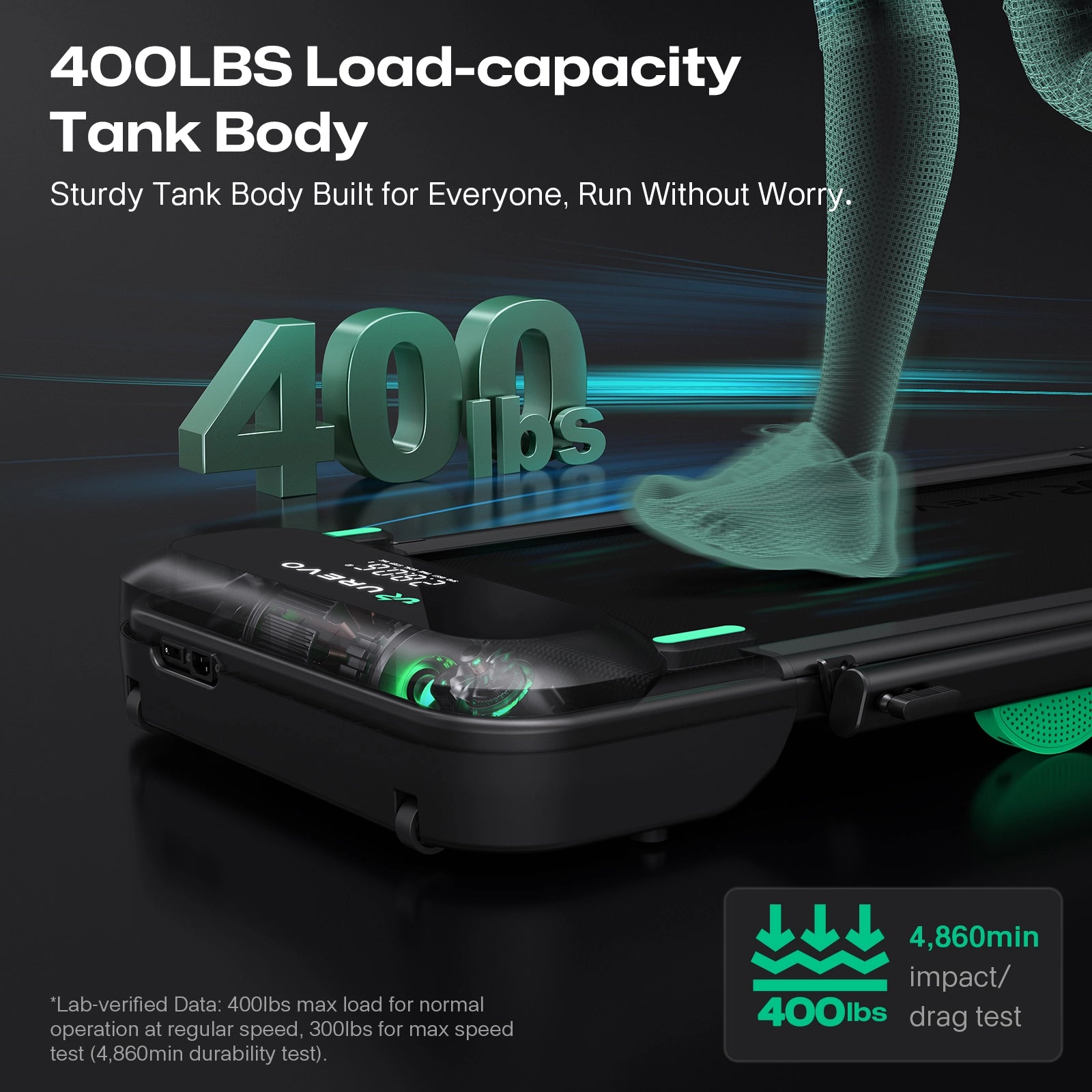 Home Fitness Center: Pro-level treadmill with 2-in-1 foldable design and 400 lbs superior load capacity, move free and burn calorie faster.