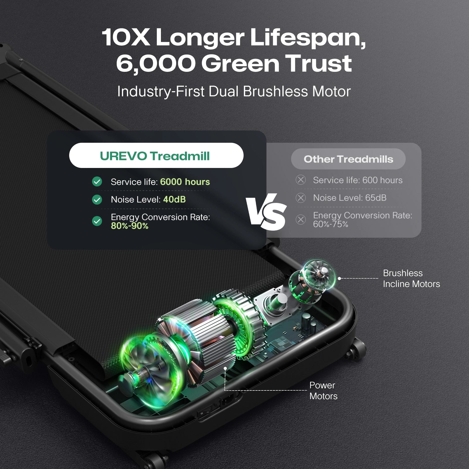 Dual Brushless Motors: 3.0HP megapower dual brushless motor, ultra quiet, dust-free and long-lasting, environmentally friendly, providing stable and continuous strong power for your workout.