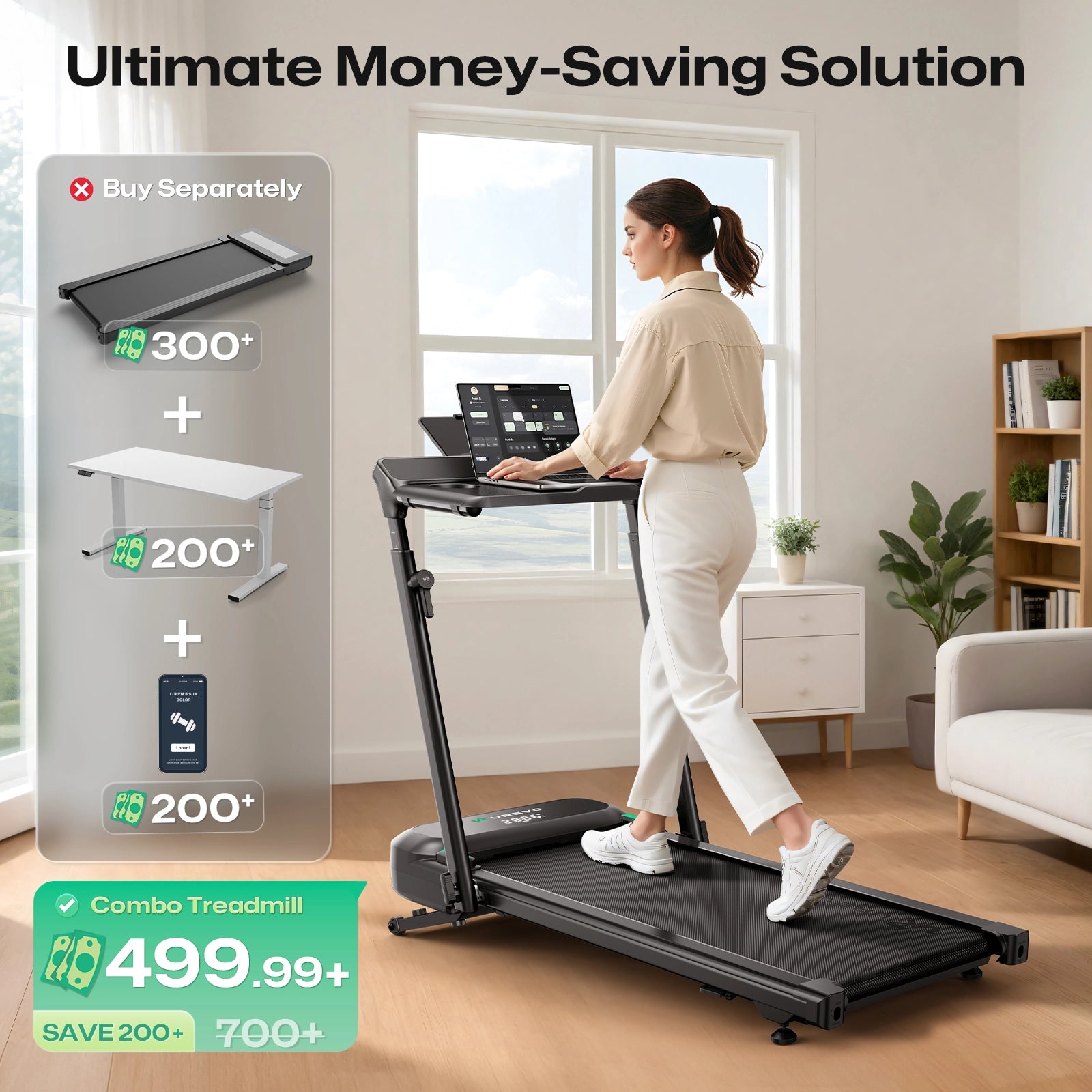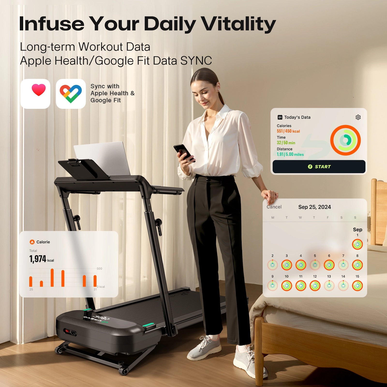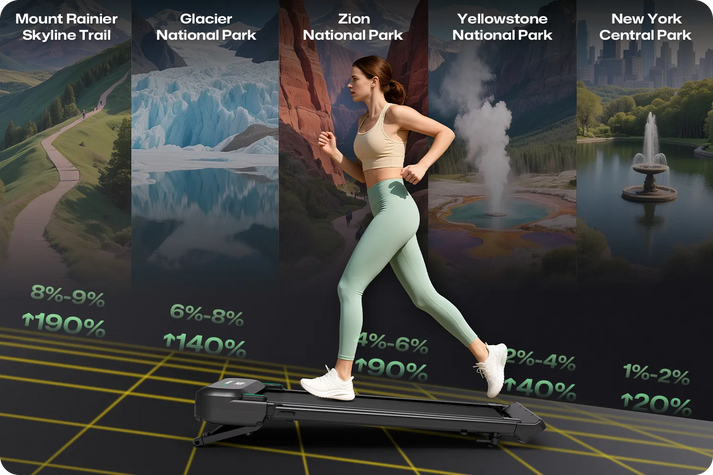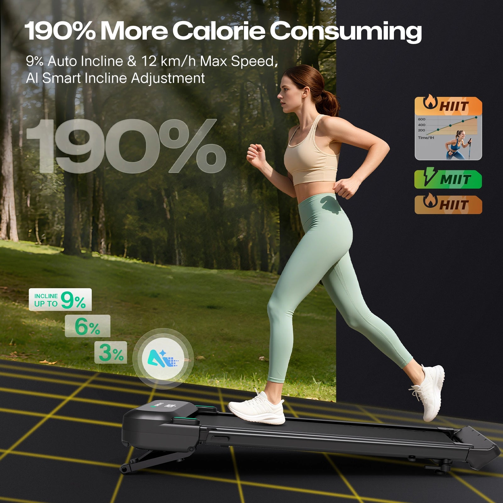 Home Fitness Center: Pro-level treadmill with 9 level 9% auto-incline and 400 lbs superior load capacity, move free and burn calorie faster.
