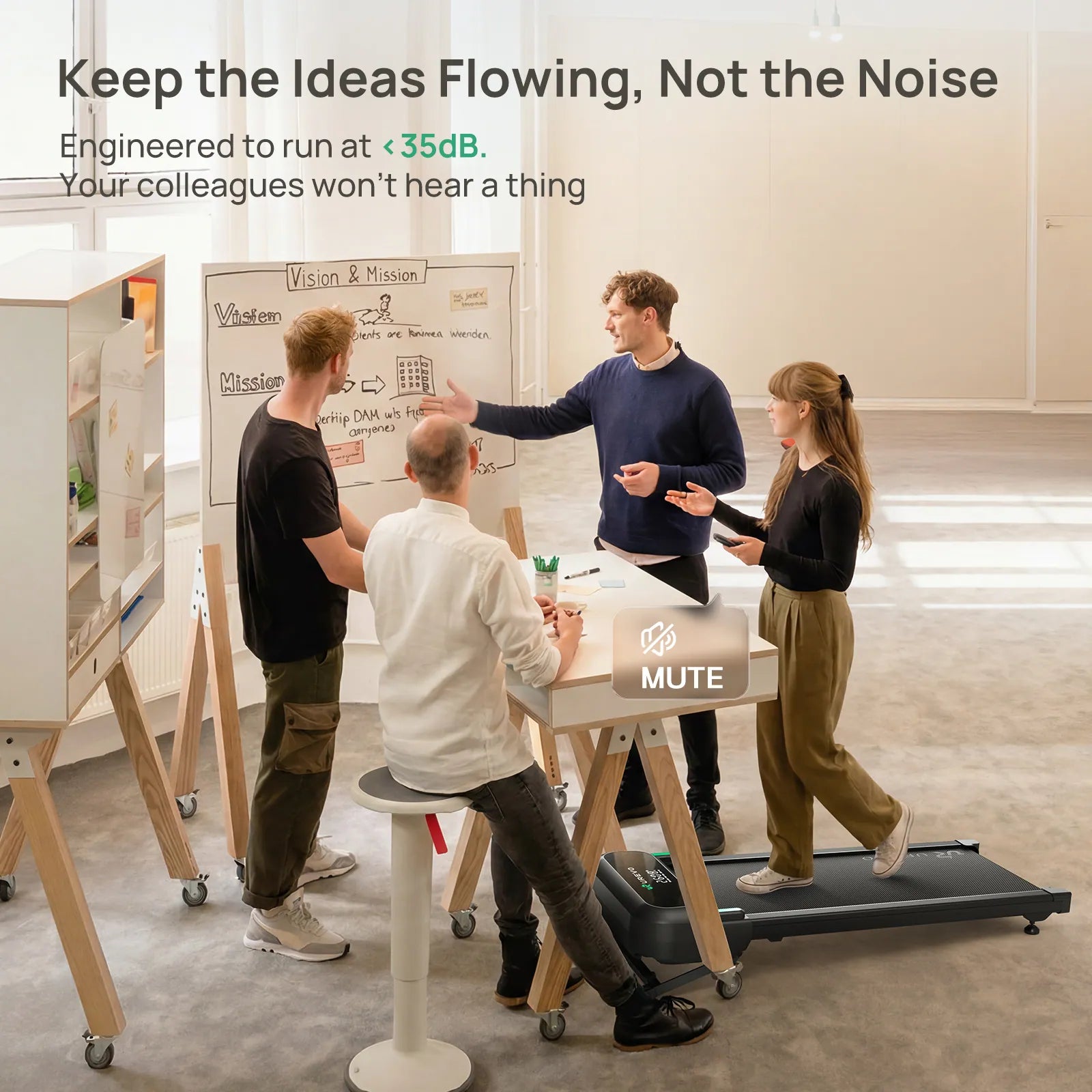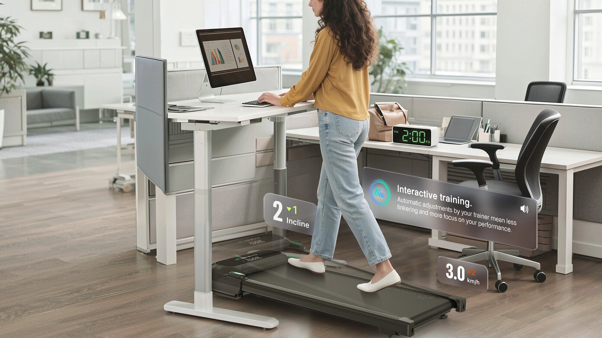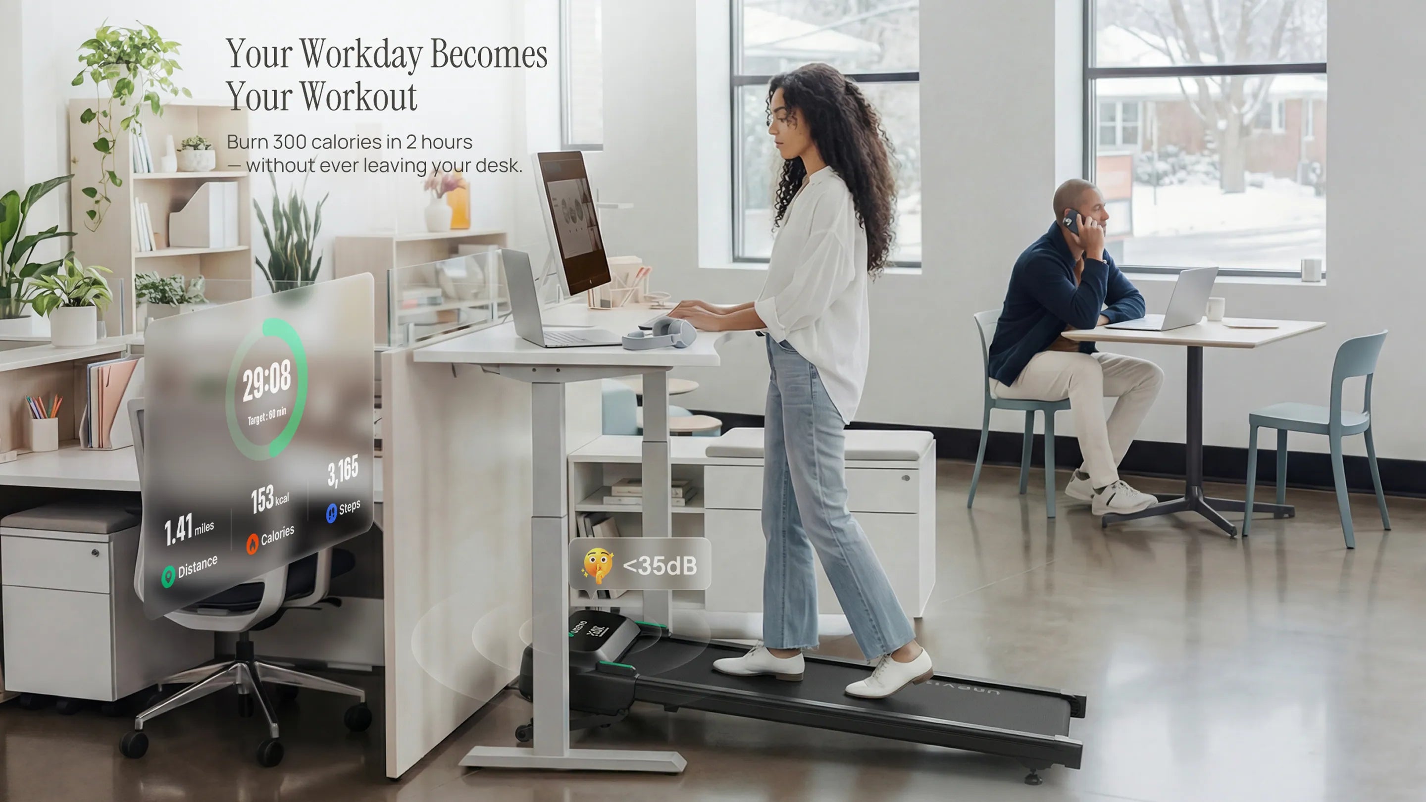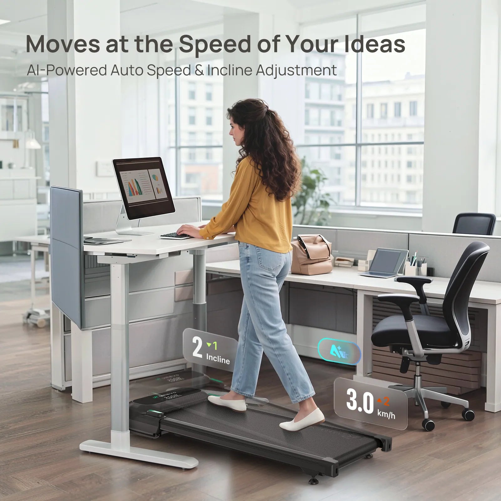AI-powered automatic speed and incline adjustment keeps your pace aligned with your activity level. No constant manual controls, no interruptions. The treadmill adapts quietly in the background, helping walking fit naturally into your work routine.