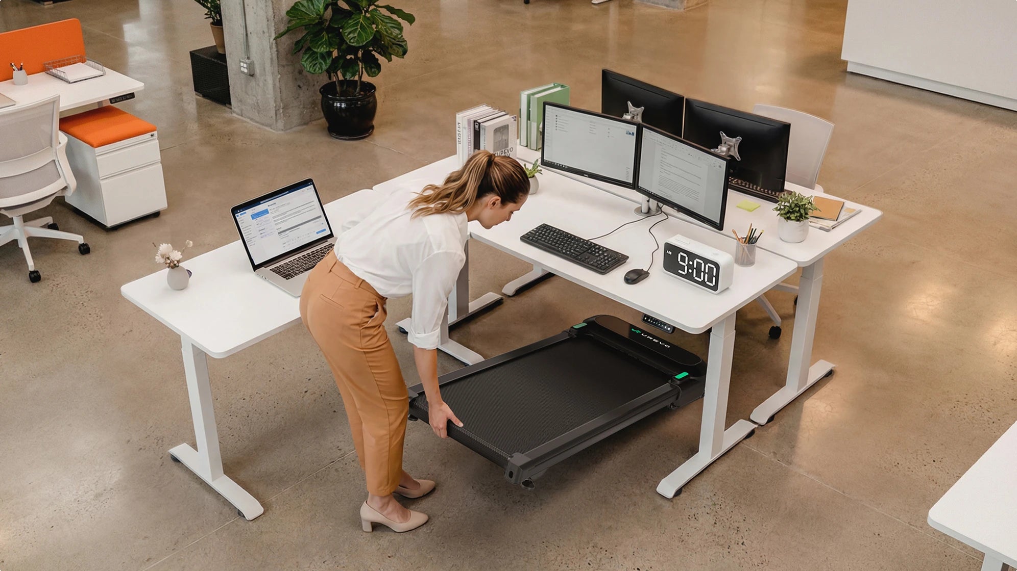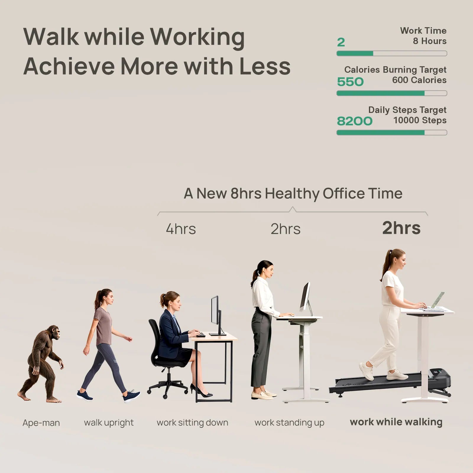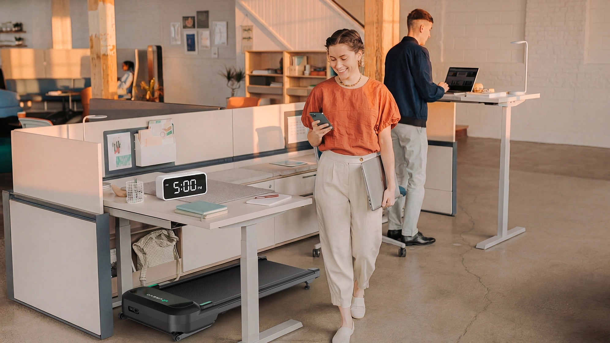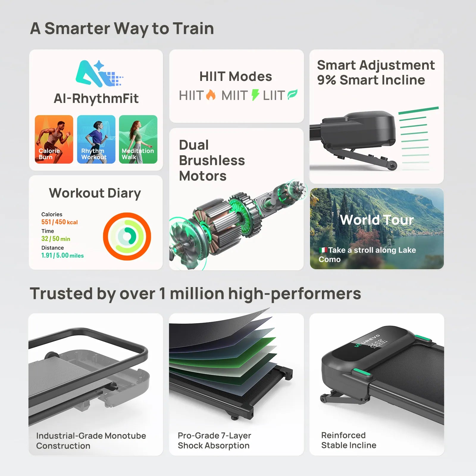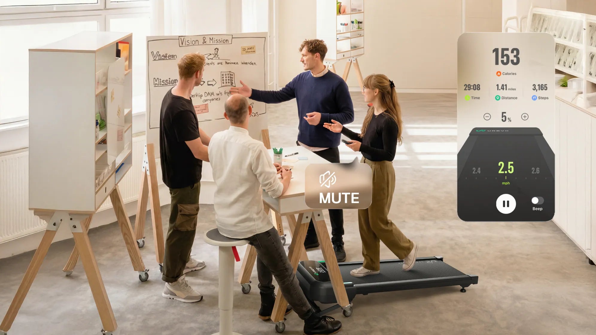 AI-powered automatic speed and incline adjustment keeps your pace aligned with your activity level. No constant manual controls, no interruptions. The treadmill adapts quietly in the background, helping walking fit naturally into your work routine.